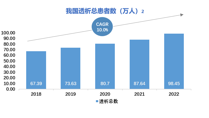 研究表明:目前,中國(guó)存量透析治療需求仍然遠(yuǎn)未被滿足,晚期腎病患者接受透析治療的比例偏低,中國(guó)的平均透析治療為每百萬(wàn)人182人,除北京外,遠(yuǎn)低于其他國(guó)家和地區(qū),中國(guó)當(dāng)前整體透析治療率不到20%,低于全球平均37%治療率,更是遠(yuǎn)低于歐美等發(fā)達(dá)國(guó)家90%的治療率,中國(guó)透析需求遠(yuǎn)未被滿足,透析市場(chǎng)發(fā)展?jié)摿薮?。透析市?chǎng)是中國(guó)最具潛力的藍(lán)海市場(chǎng)之一,中投顧問產(chǎn)業(yè)研究中心表示,透析服務(wù)供給者的增加、大醫(yī)保覆蓋范圍擴(kuò)大、透析材料及器材價(jià)格下降等因素將促進(jìn)透析費(fèi)用下降,以7萬(wàn)元的人均年血透費(fèi)用和5萬(wàn)元的人均年腹透費(fèi)用估算,2020年透析市場(chǎng)規(guī)模有望達(dá)498億元,接近500億元。
